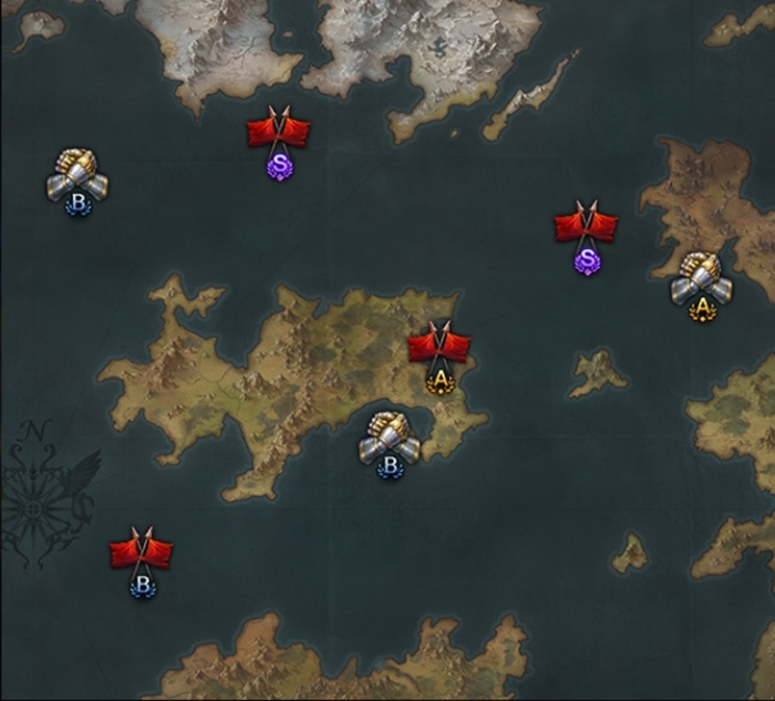 섬은 ‘S’, ‘A’, ‘B’의 3가지 등급으로 구분되며 보상의 종류는 같지만 등급에 따라 지급되는 보상의 양이 일부 차이 난다.