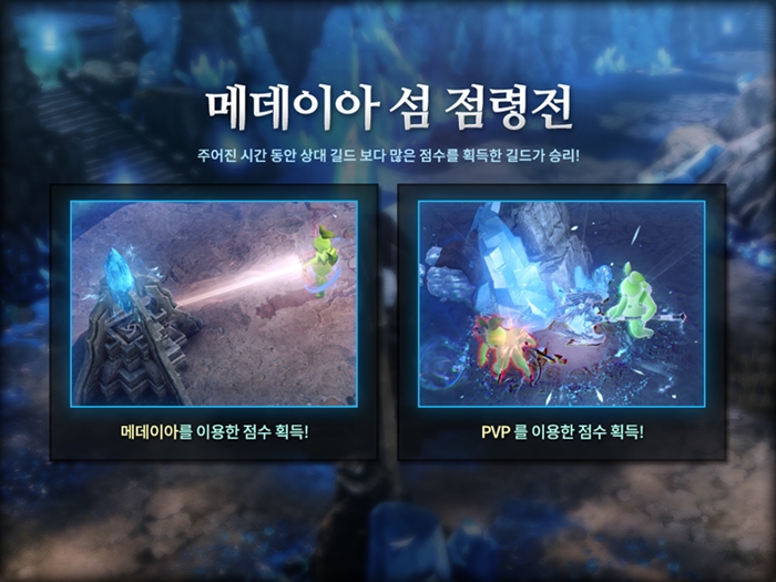 S급 섬인 메데이아 섬 점령전은 PVP로 이루어지며 주어진 시간 동안 상대 길드보다 더욱 많은 점수를 획득한 길드가 승리하는 방식으로 진행된다. 승리한 길드는 승점을 획득하며 해당 섬 점령에 도전한 길드가 돌아가면서 대결을 펼쳐 가장 많은 승점을 획득한 길드가 섬을 점령하게 된다.