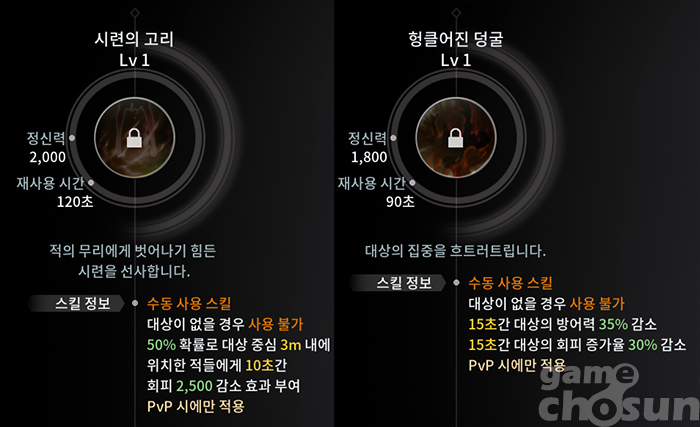 회피 감소와 방어력 감소 스킬이 눈에 띈다 = 게임조선 촬영