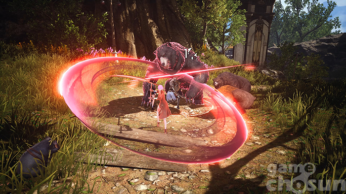 낫은 넓은 범위 휘두르기 모션을 보여주지만 대부분 단일 대상 판정이다 = 게임조선 촬영