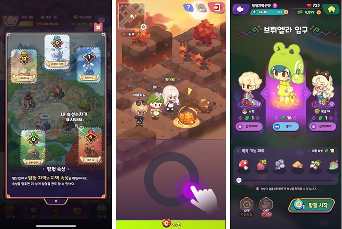 지역 별로 탐험 맵의 배경, 오브젝트, 보상 등이 상이하다