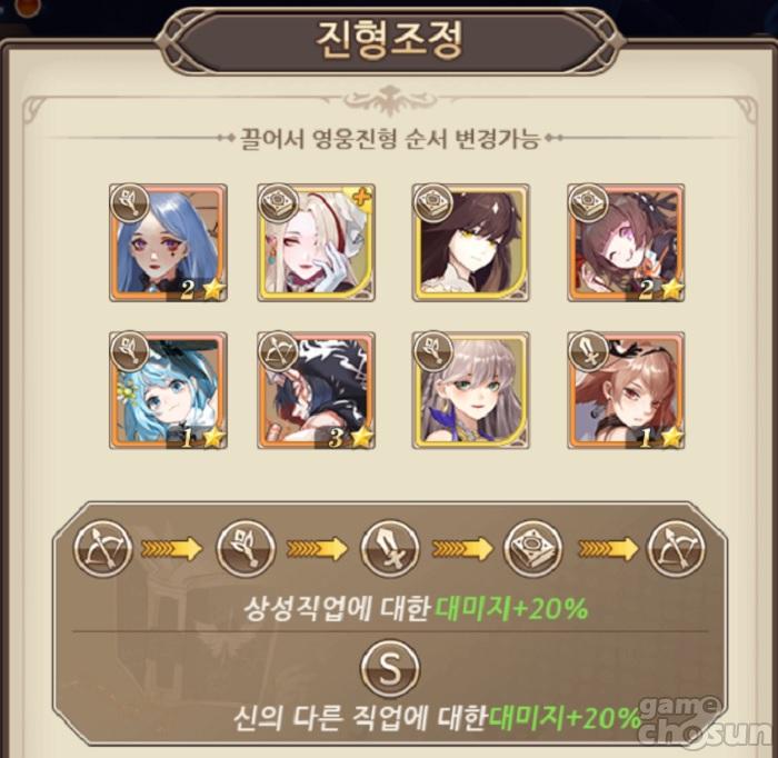 클래스도 존재한다. 클래스는 크게 궁수와 법사, 술사, 전사, 신족으로 나뉘며, 해당 클래스의 분류는 PvP 콘텐츠에서 매우 중요한 역할을 한다. 예를들어 궁수는 법사에 강하고, 법사는 전사에 강하며, 전사는 술사에 대해 효율이 높다. 반대로 술사는 궁사에게 강한 면모를 보인다. 여기에 신족은 다른 클래스 모두에 대해 우월한 능력을 보여주기에 단순히 디펜스 스테이지를 공략하기 위해 파티 혹은 덱을 편성할 뿐만 아니라 PvP 콘텐츠에 맞춰 구성하는 재미도 있다.