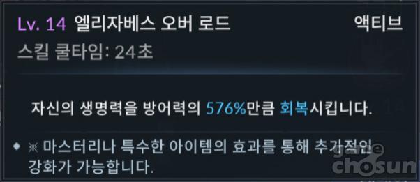 방어력에 비례해 자가 수복하는 스킬 = 게임조선 촬영