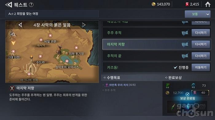 지나간 퀘스트로 되돌아가 업적을 시도할 수 있다. = 게임조선 촬영