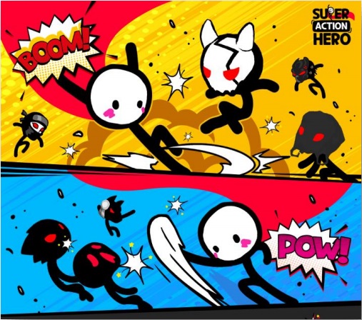‘슈퍼 액션 히어로 리턴즈’는 *플립 북 애니메이션 컨셉으로 제작된 액션 게임으로, 학창시절 누구나 한번쯤 해봤을 법한 교과서 낙서 장난을 기반으로 개발됐다. 단순하게 그려진 낙서 캐릭터가 책장을 넘길 때마다 살아 움직이는 듯한 순수한 재미를 느꼈던 그 시절 그 감성을 게임에서 다시금 느낄 수 있게 한다.