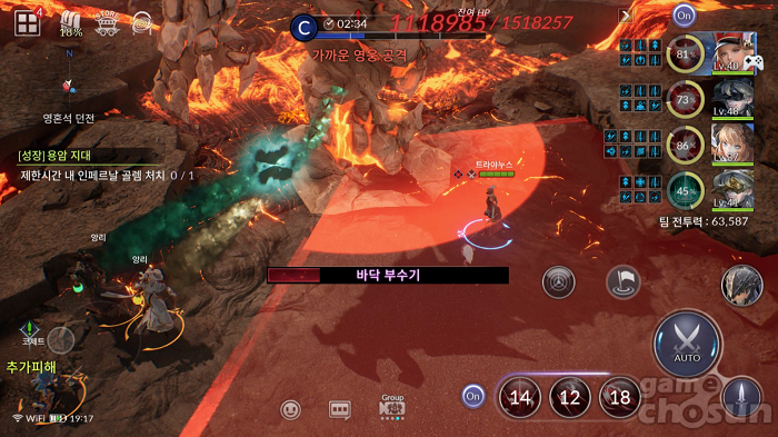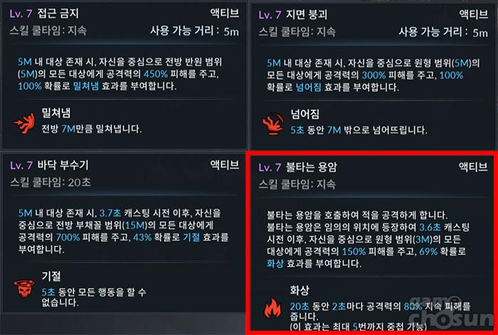 5m 내에 영웅이 있으면 불타는 용암을 제외한 나머지 패턴이 우선 발동된다. = 게임조선 촬영