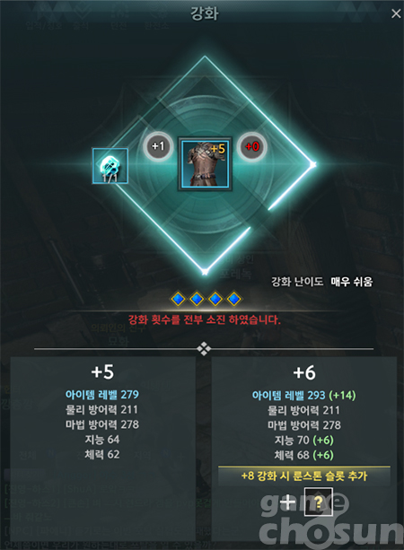 이제 강화로 룬 스톤 슬롯을 추가할 수 있다 = 게임조선 촬영
