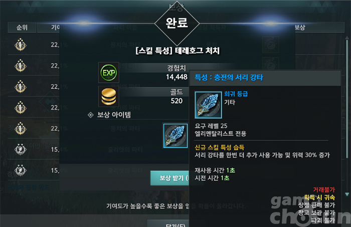 이번 테스트부터 희귀 등급 이상 특성은 퀘스트나 사냥으로 얻어야 한다 = 게임조선 촬영