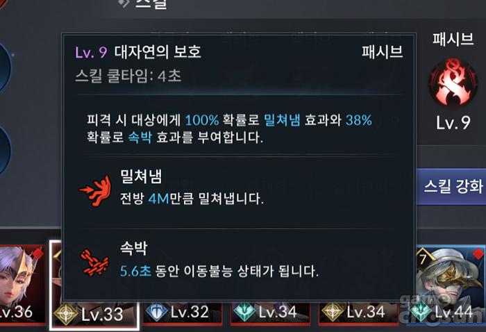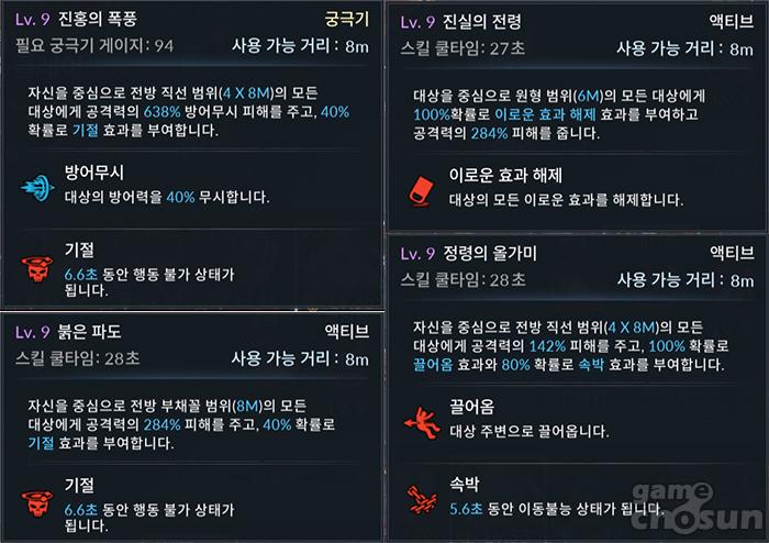 9레벨 기준 툴팁, 스킬 화력은 좋지 못하다. = 게임조선 촬영