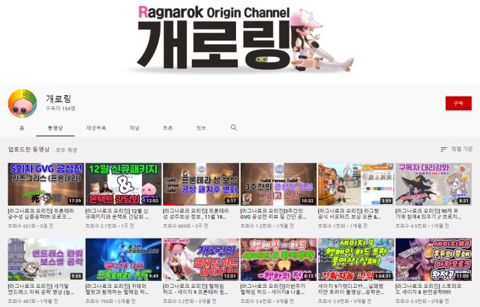 개로링 안녕하십니까. 모로크 서버에서 스나이퍼 및 하이프리스트로 주로 플레이하는 '개로링'이라고 합니다. 과금러나 고수뿐만 아니라 처음 시작하시는 분들도 따라올 수 있도록 유튜브에 헬헤임이나 세이지 관련 공략 영상을 비롯한 기타 라그나로크 오리진 관련 영상을 올리고 있습니다.