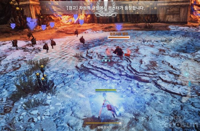 처음에는 세 곳에서 순차적으로 시작해 나중엔 동시에 몬스터가 나온다 = 게임조선 촬영