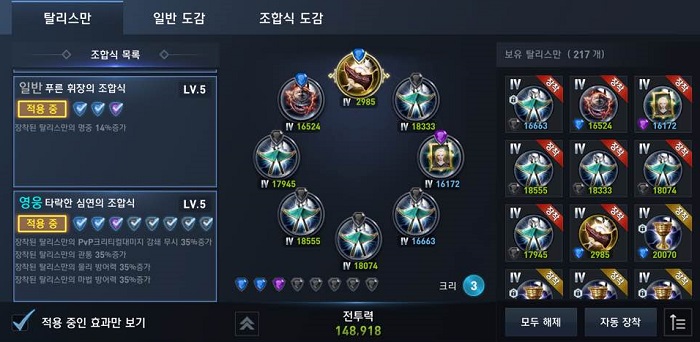 사냥에서는 '나센', '엘븐'을 사용하고 있으며 명예의 전장과 요새전에서는 '영웅', '엘븐' 세트를 활용합니다. 그리고 대규모 쟁에서는 '엘븐'과 '나센'을 주로 사용합니다.