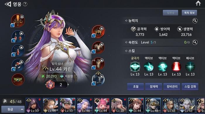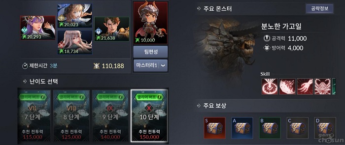 상위 난이도 1장과 기간테우스 전을 위해서는 고급 영웅인 길라한의 육성이 필수적이다. = 게임조선 촬영