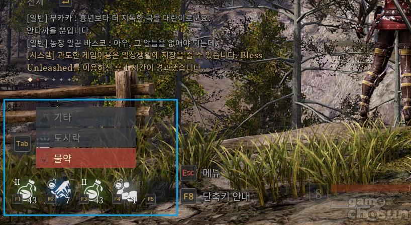 탭키를 활용한 아이템 탭의 전환도 눈여겨볼만한 시스템이다. 촌각을 다투는 전투 상황에서 탭을 전환해 왼손만으로도 효과적으로 필요로 하는 아이템을 사용할 수 있는 기능은 매우 활용도가 높았다. 이는 마치 유명 헌팅 액션 게임 '몬스터 헌터'에서 아이템을 사용하는 방식과 유사한데, 몬스터 헌터보다 더욱 간편하고 다양한 아이템을 사용할 수 있다는 점이 눈에 뜬다.