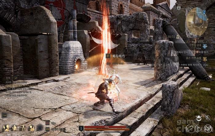 액션은 전체적으로 묵직하면서도 투박하다. 논타겟팅 기반의 전투가 이뤄짐에 따라 컨트롤의 재미를 극대화했으며 결코 화려하거나 빠르지는 않지만 무기를 휘두를 때마다, 그리고 마법을 사용할 때마다 묵직한 타격감이 느껴진다. 이 부분에 대해서는 분명히 호불호가 갈릴 수 있는 부분이다. 어떻게 보면 움직임이 느려 다소 답답하게 느껴질 수 있기 때문.