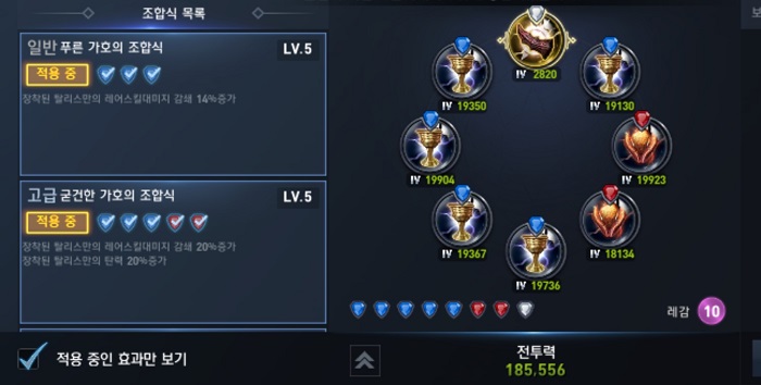 탈리스만도 상황에 따라 변경하지만 주로 레어스킬 데미지 감쇄, PvP 데미지 감쇄, PvP 데미지 감쇄 무시를 사용하고 있습니다.