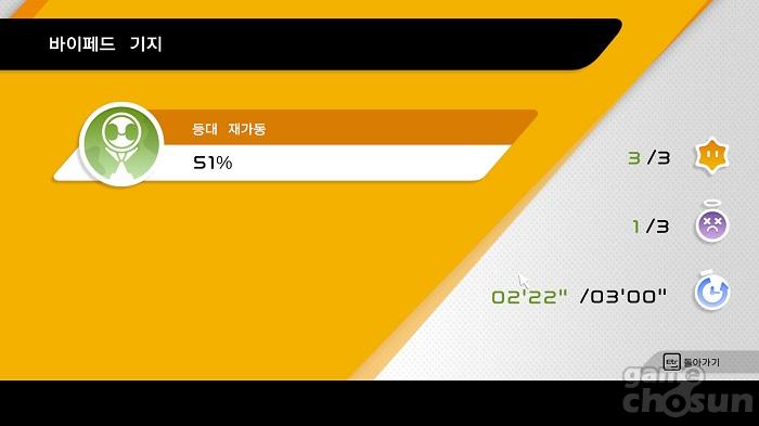 그렇다고 무작정 난이도를 낮춘 것은 아니다. 이런 퍼즐 플랫포머에 익숙하며 어려운 난이도를 추구하는 플레이어를 위한 도전 요소도 준비되어 있다. 먼저 스테이지를 클리어할 때 수집한 별, 사망 횟수, 클리어 시간을 체크해 요구치를 충족했으면 스테이지 준비 단계에서 해당 문양이 표시된다.