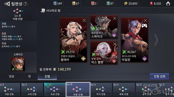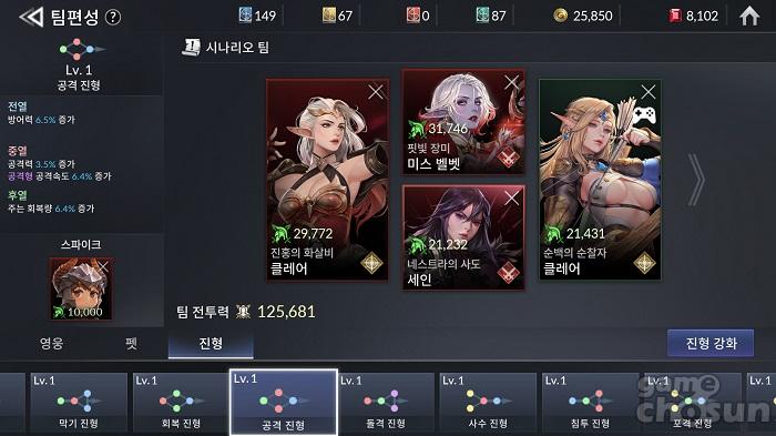 진형 레벨이 오를수록 전술서 부담이 상당하다. = 게임조선 촬영