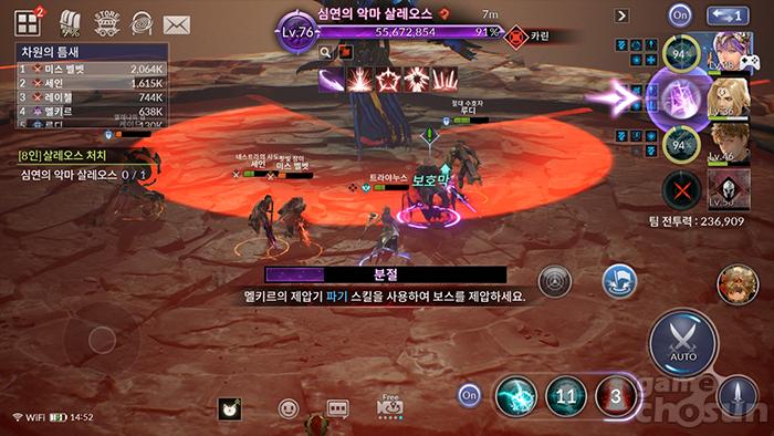 50% 이하에서 분절 전 밀쳐짐 패턴을 신경 안쓰면 파티가 전멸할 수 있다. = 게임조선 촬영