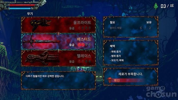 스테이지별 최종 보스를 물리치고 나면 부활의 우상을 블러드 메탈로 교환할 수 있다 = 게임조선 촬영