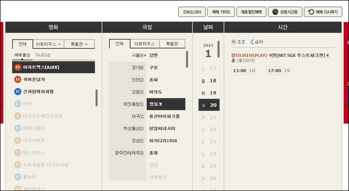 이 글을 보고 있는 시점이라면 전국 30개 관에서 예매가 가능하다.