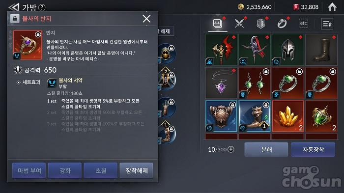 특히, 가장 인기 있는 장신구 중 하나가 바로 부활 효과를 가진 '불사 장신구'다. 불사 장신구는 보통 이상의 방치형 필드 8, 정예3 지역에서 드랍되는 장신구로 비정기적으로 진행되는 불사 이벤트를 통해서도 제작할 수 있는 아이템이다.