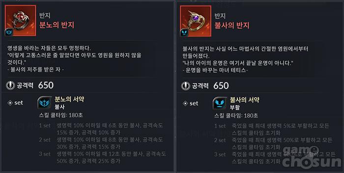 결투장에서 분노 장신구와 불사 장신구가 얼마나 가지고 있느냐에 따라 승패에 큰 영향을 미치기 때문에 이를 견제하기 위한 수단 역시 당연히 강구해야 한다. 이중 부활 효과를 가진 불사 장신구는 1세트만으로는 생명력이 5% 밖에 안돼 단독으로 큰 힘을 못쓰는 반면 분노 장신구는 일정 시간 동안 사망하지 않으면서 강해지기까지 해서 골머리를 썩인다.