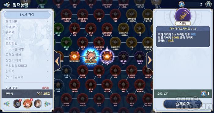 잠재능력에서 캐릭터의 능력치와 각종 특수 효과를 얻을 수 있다 = 게임조선 촬영