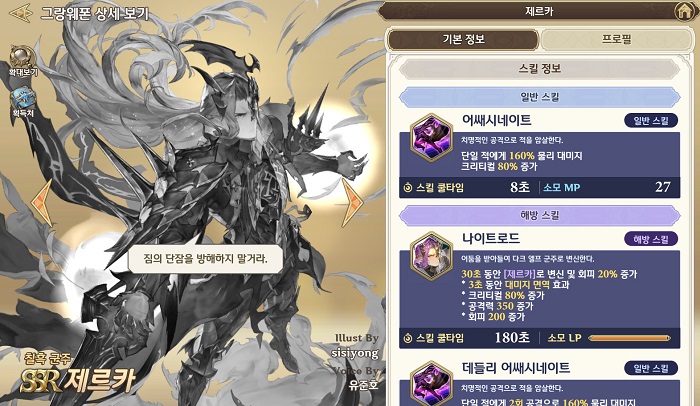 '제르카'도 괜찮은 평가를 받고 있는데, 단일 대상에 대해서는 '잉그리드'보다 더욱 높은 효율을 보여주기 때문이다. 크리티컬 확률 증가와 더불어 회피 능력치까지 상승시켜 주기에 보스 몬스터와의 전투에서 활용도가 높다.
