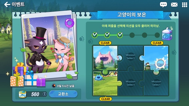 그 밖에 캐릭터의 성장을 돕는 귀여운 동물 캐디의 등장 역시 캐주얼 게임의 완성도를 한층 더 높여준다. ‘캐디’는 게임을 플레이 하는 동안 주인공 캐릭터에게 조언을 제공하는 등 함께 성장하며 친구처럼 옆에서 도움을 주는 역할을 한다.