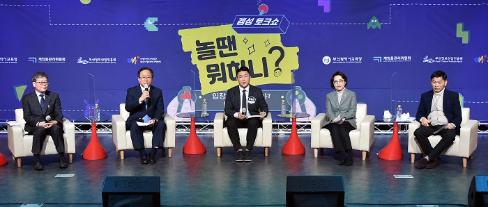 [자료제공 = 게임물관리위원회] 게임물관리위원회(위원장 이재홍, 이하 ‘게임위’)는 3일(수) 부산e스포츠상설경기장에서 부산 지역 초·중·고등학생과 학부모들을 대상으로 개최한 ‘건전 게임·미디어 이용문화 조성을 위한 토크 콘서트(‘겜성 토크쇼, 놀 땐 뭐하니?’)’를 성황리에 마쳤다.