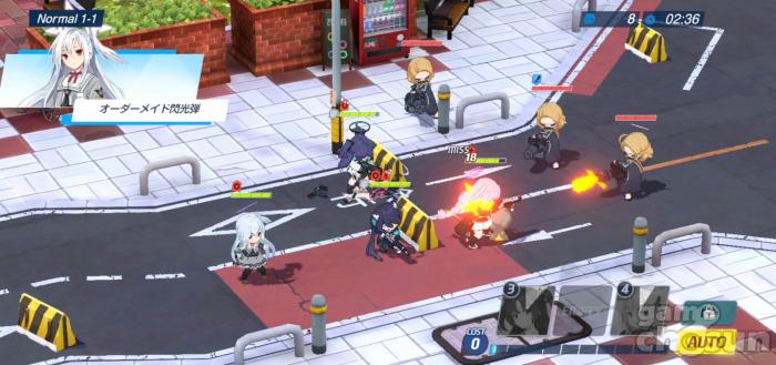 3D모델링을 활용하는 만큼 블루 아카이브의 전투는 다른 캐릭터 수집형 RPG에 비해 좀 더 입체적이다. 이 게임 역시 왼쪽에서 오른쪽으로 진행하는 방식을 택했지만, 단순 횡스크롤 벨트 형식이 아닌 쿼터뷰에 가까운 시점을 제공해 캐릭터들이 실제 전장에서 싸운다는 느낌을 받을 수 있다.