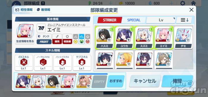 기본적인 편성은 스트라이커 넷, 스페셜 둘이다 = 게임조선 촬영