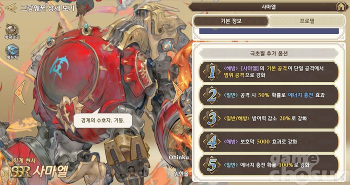 다른 그랑웨폰의 패시브는 사마엘을 결전병기로 만들어준다 = 게임조선 촬영