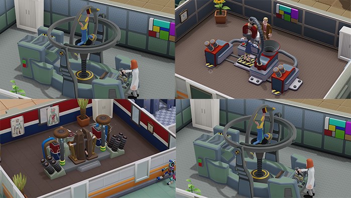 이런 점을 감안해도 투 포인트 호스피탈은 충분히 즐길만한 게임이다. 솔직히 투 포인트 호스피탈의 소개 영상을 처음 봤을 때, '재밌을까?'라는 생각보다 '이래도 될까?'라는 생각이 먼저 들었다. 비슷한 얼굴에 머리 형태와 의상만 다른 우스꽝스러운 캐릭터들, 폭발하는 병원을 배경으로 태연하게 안전함을 강조하는 의사, 환자의 머리를 뽑고 새 머리를 이식하는 기이한 치료법까지 현실에선 볼 수 없는 병원이 그곳에 있었다. 이런 독특한 연출은 기존 병원이 가진 이미지를 와르르 무너뜨리며 유저들에게 기존 건설 경영 시뮬레이션에서 느낄 수 없는 새로운 유쾌함을 선사한다.