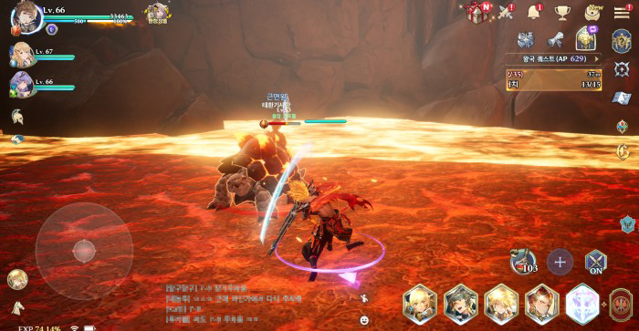 과학공식: 챕터 5 화산 지역의 메인 퀘스트인 '로모'를 트라이할 때가 제일 힘들었던 거 같습니다. 제가 초반에 윈과 라스를 주력으로 육성하였는데, 공격력이 너무 부족해서인지 제일 힘들고 오래 걸렸던 보스였답니다.