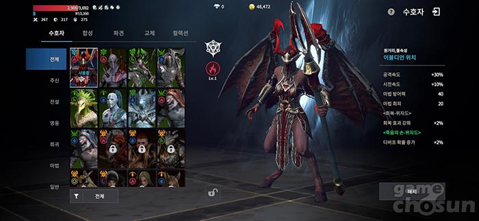 수호자 별로 클래스와 속성이 표기돼 있다. = 게임조선 촬영