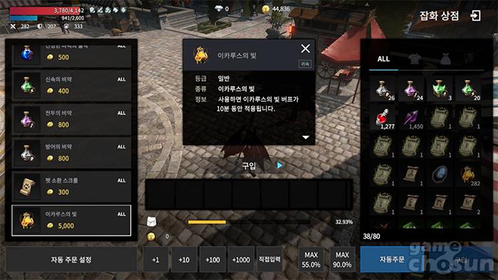 이카루스의 빛은 잡화상인에게서 구매할 수 있다. = 게임조선 촬영