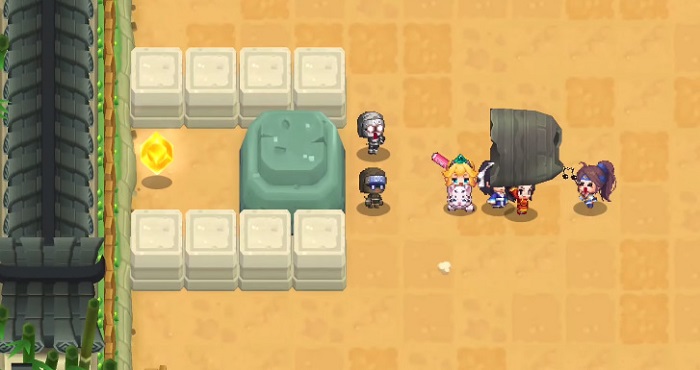또 불이 붙은 전사가 있는 맵에서는 거대한 바위가 길을 막고 있는데, 맵의 하단에는 화로를 찾을 수 있다. 해당 화로를 들고 불이 붙은 전사에게 가져다대면 화로에 불을 붙일 수 있고, 바위 양 옆에 불을 옮겨 붙이면 길이 개방된다.