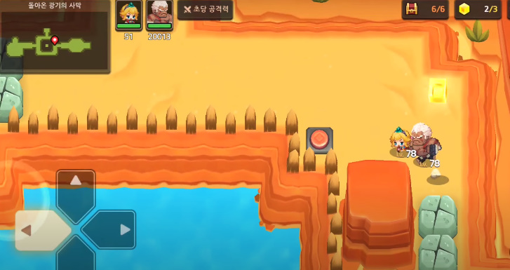 광기의 사막에서 가장 어려운 퍼즐은 과식으로 인해 쓰러진 NPC에게 도움을 주는 일이다. 해당 맵에서 위쪽을 살펴보면 이동 가능한 가속 발판이 있는데, 해당 발판을 맵의 좌측 끝으로 이동시킨 후 꼬마 공주가 발판을 밟으면 된다.