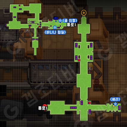 또 과식해서 쓰러진 NPC가 있는 맵에서는 빨간색 스위치가 있는데, 해당 빨간색 스위치와 가속 발판이 수직이 되도록 이동시킨 후에 발판을 밟으면 막혀있는 곳의 반짝이는 스팟을 캘 수 있다.