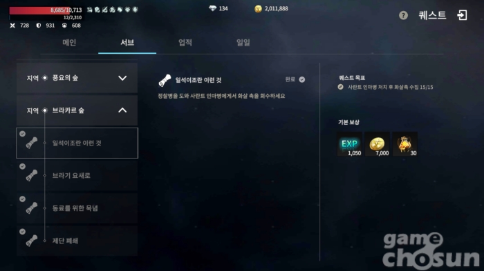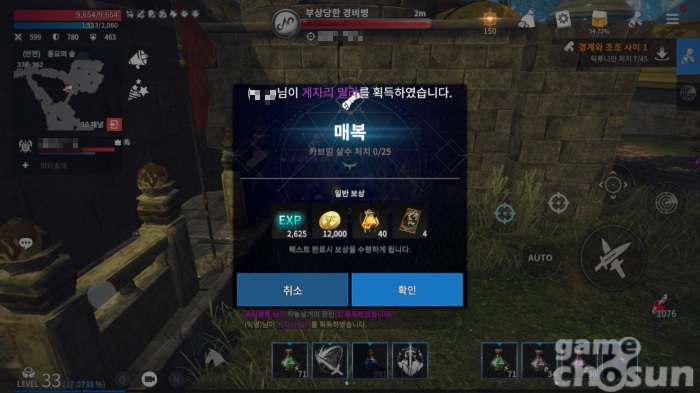 메인 퀘스트와 병행한다면 더 높은 효율을 보인다 = 게임조선 촬영