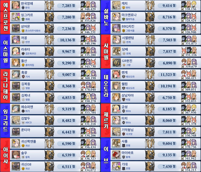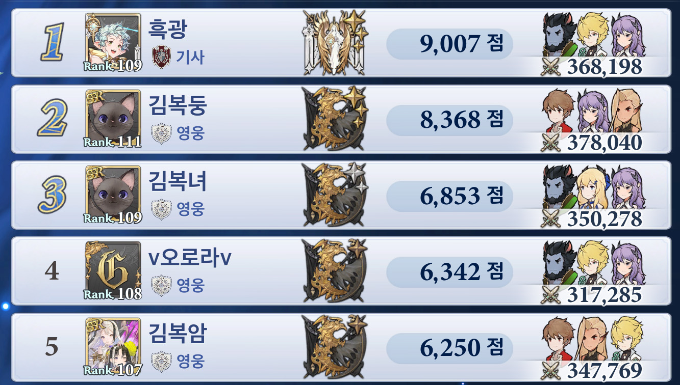 * 전투력 등 각종 순위는 결투장 랭킹 TOP5에 입성한 게이머 기준이므로 누락된 게이머가 있을 수 있습니다.*