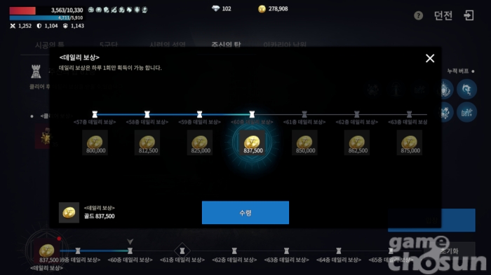 이미 등반 한 만큼 매일 클릭 한 번으로 대량의 골드 획득 = 게임조선 촬영