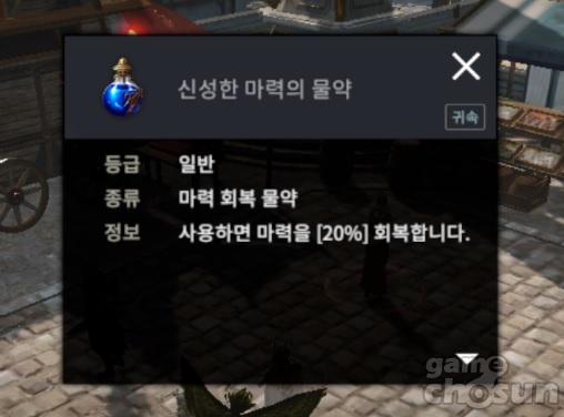 최대 마나가 늘어나면 신성한 마력의 물약 효율이 상승한다. = 게임조선 촬영