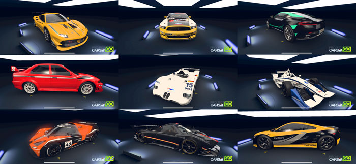 카레이싱 게임에서 빼놓을 수 없는 요소 중 하나는 역시 세계 유명 '스포츠카'와 '레이싱카'를 감상하는 것이다. 프로젝트 카스 고에서는 50여 종이 넘는 차량이 준비돼 있는데, 공식 라이센스를 보유했기에 맥라렌부터 포르쉐, BMW, 아우디, 벤츠, 페라리, 파가니 등 레이싱카를 대표하는 머신으로 게임을 즐길 수 있다.
