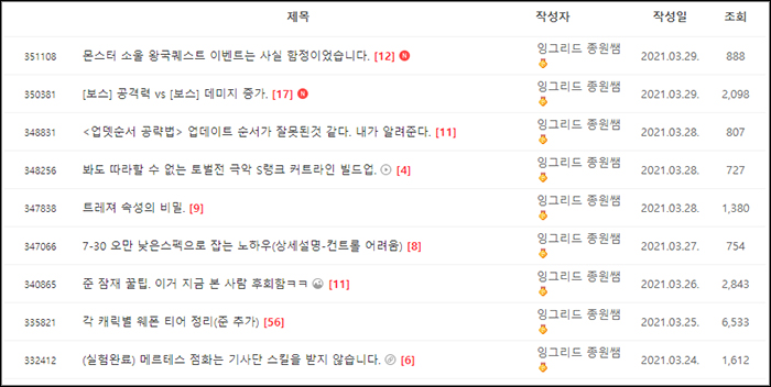 팁 게시판에서 꾸준히 활동 중인 잉그리드 서버 '종원쌤' = 그랑사가 공식 커뮤니티 갈무리