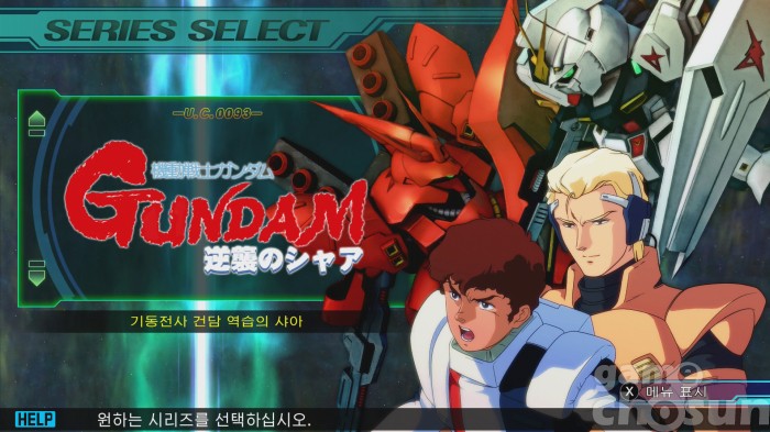 스토리는 주로 '메인 스테이지'를 중심으로 즐기게 된다. 메인 스테이지는 우주세기의 각 작품을 일러스트와 애니메이션, 전투 등으로 구성한 콘텐츠다. '건담 대지에 서다' 같은 전설적인 에피소드부터 '통상의 3배 스피드' 같은 유명한 장면까지 건담 팬이라면 환호할만한 구성으로 가득하다. 중요한 장면은 애니메이션으로 처리됐기 때문에 마치 당시 작품을 직접 관람하는 듯한 생생함을 느낄 수 있다.