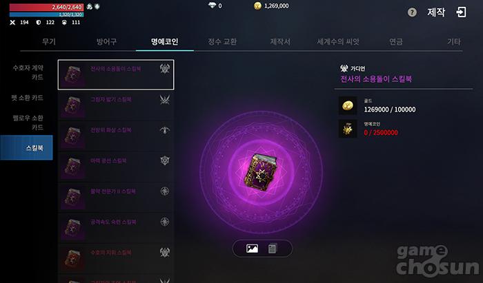 물론 등급이 높은 스킬북은 요구하는 명예코인이 상당하다. = 게임조선 촬영