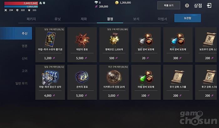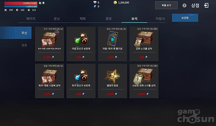 주신의 보석과 영혼의 보석으로 스킬북을 뽑아볼 수 있다. = 게임조선 촬영